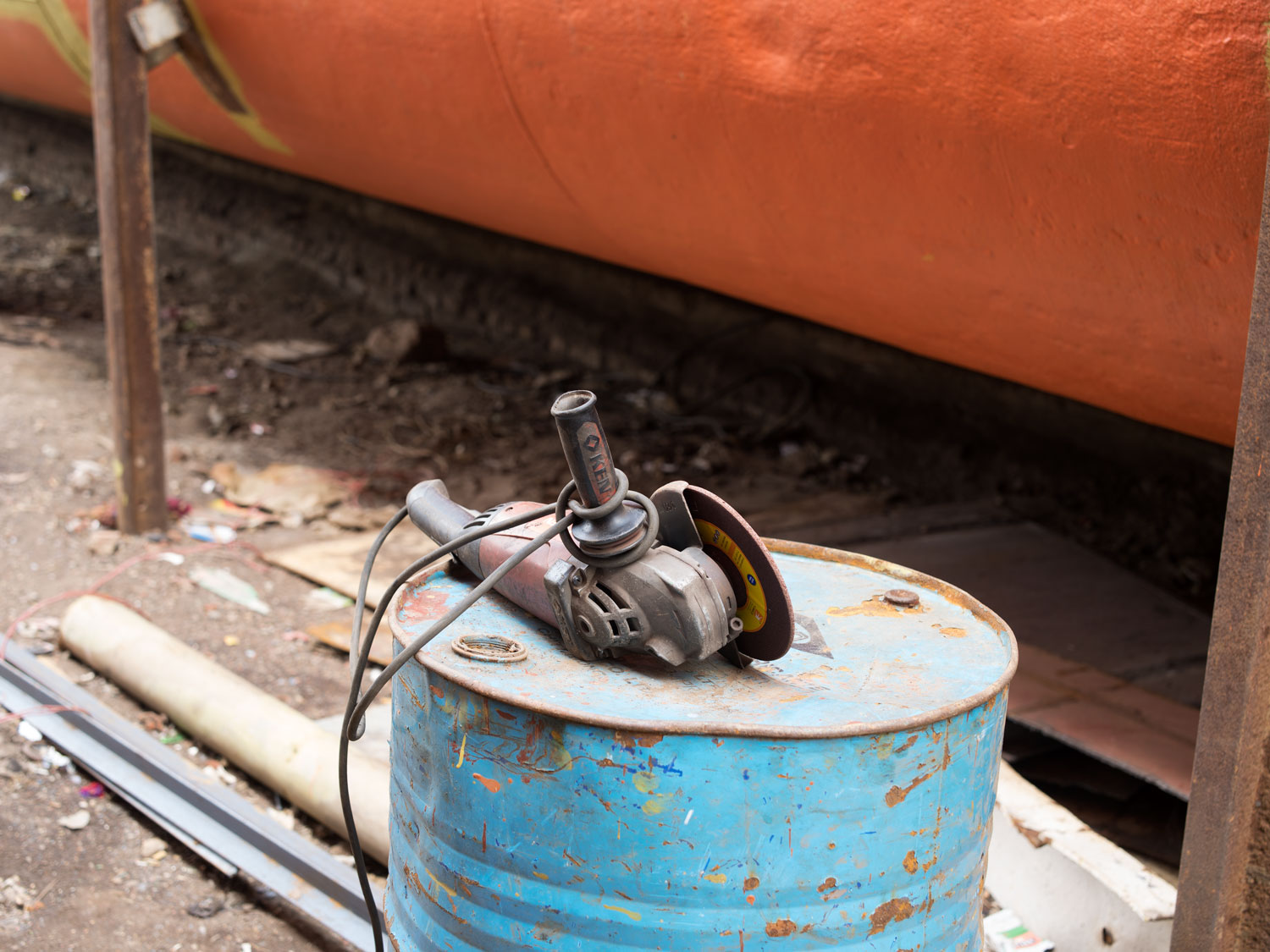 Szlifierka kątowa, stocznia Char Mirebagh, Dhaka (2017)