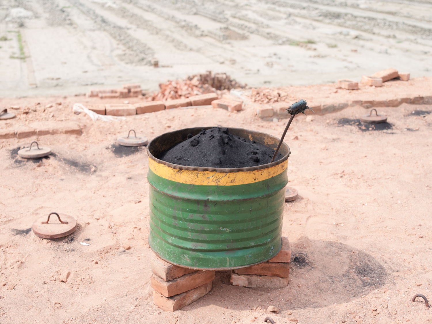 Z gliny formowane są cegły, które następnie suszone są na słońcu przed wypalaniem ich w piecach węglowych. Piec ma kształt dwuściennego owalu i podzielony jest na trzy sekcje. W sezonie jedna z sekcji będzie stale wypalać cegły, a w pozostałych dwóch będzie odbywał się załadunek i wyładunek cegieł.
