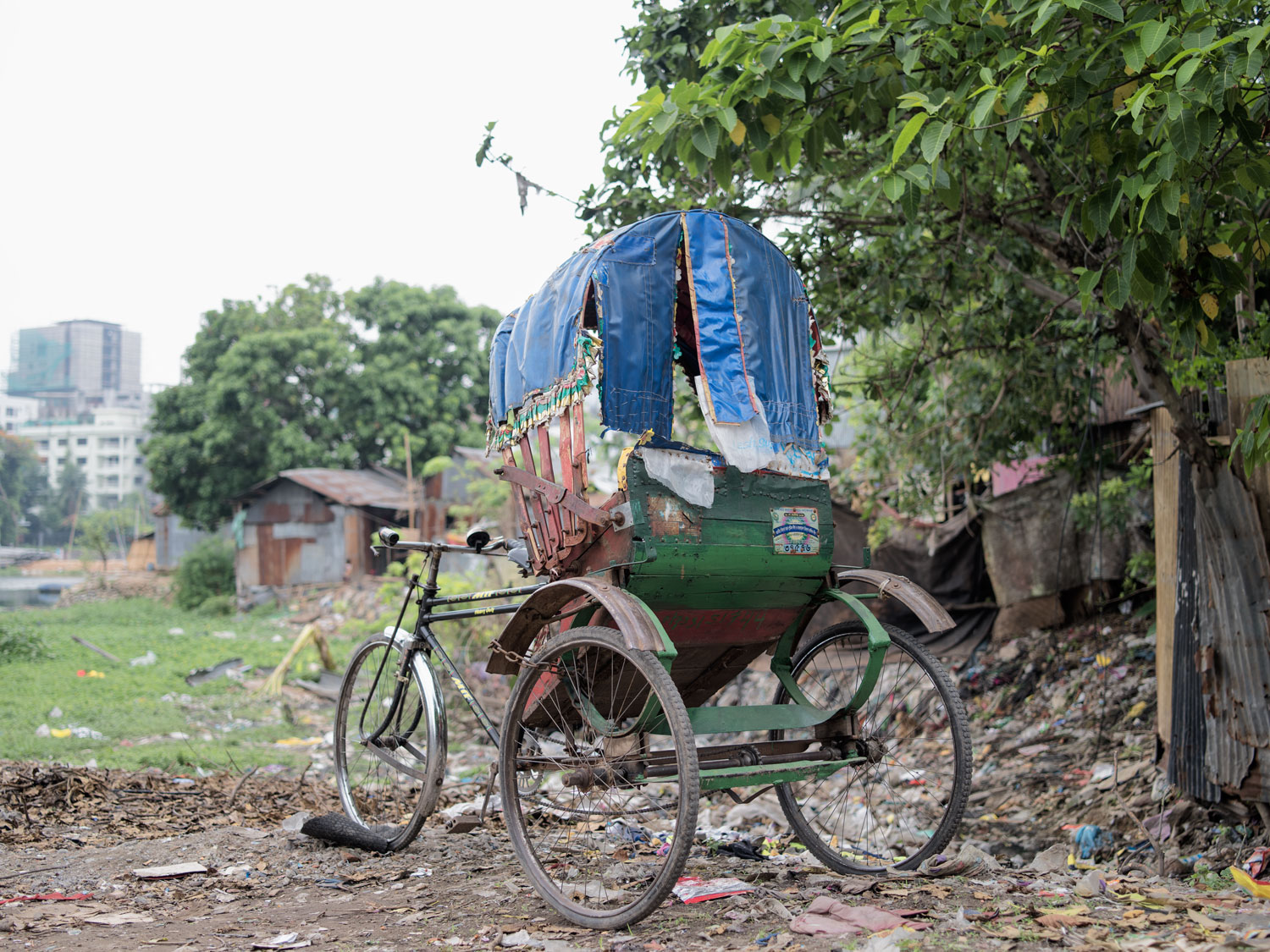Riksza na brzegu jeziora Banani, Korail Basti, Dhaka (2017)