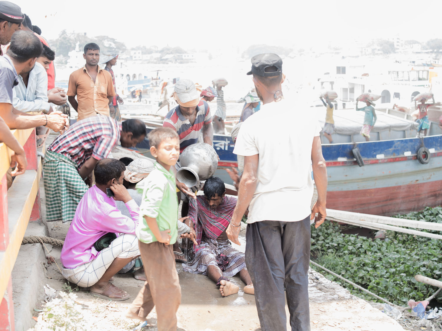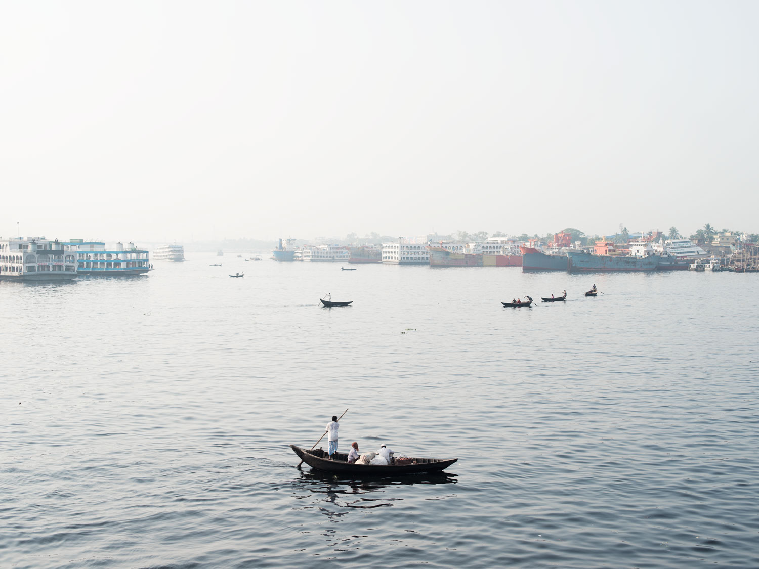 Terminal promów Saderghat w Dhace nad rzeką Buriganga to miejsce, do którego przybywa większość napływających migrantów. Tętniący życiem port w centrum starej części Dhaki jest również miejscem rozładunku towarów napływających z całego kraju.