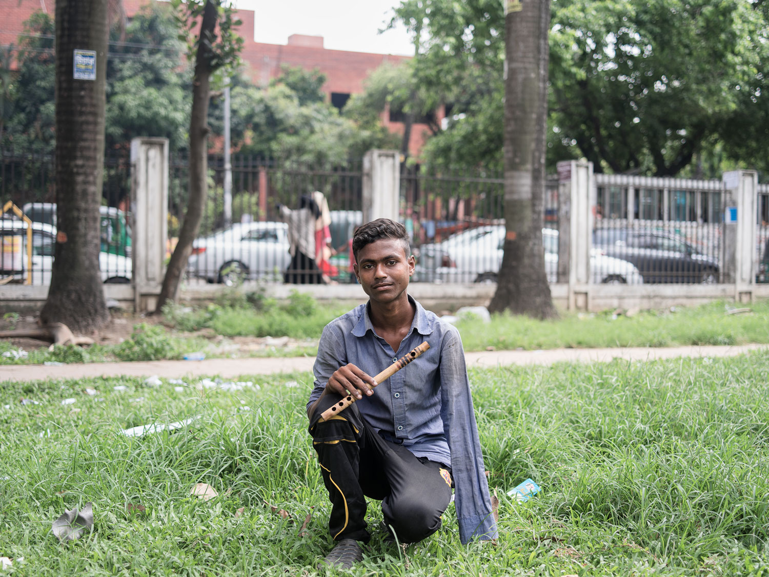 _______ Mieszkaniec parku Farmgate, który stracił rękę, gdy spadł z dachu jadącego pociągu podczas snu, Farmgate Park, Dhaka (2017)