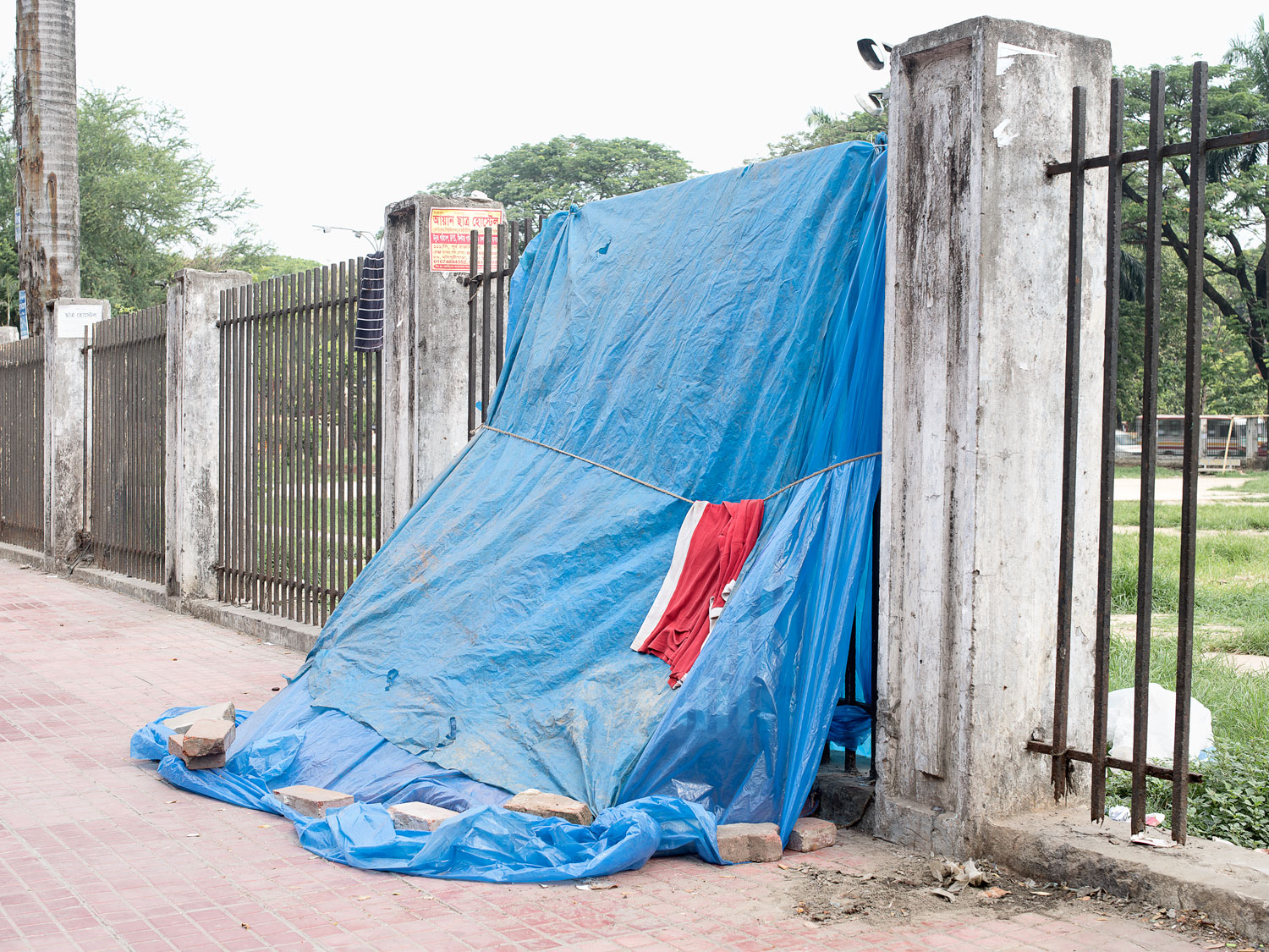 Ci, którzy przyjeżdżają do Dhaki bez żadnego wsparcia lub koneksji rodzinnych, mają przed sobą perspektywę życia na ulicy lub w parkach takich jak ten w Farmgate. Śpią w brezentowych lub polietylenowych namiotach, które są wznoszone późną nocą przy żelaznych balustradach lub sklepach, a następnie demontowane o wschodzie słońca. Nazywani „pływającą populacją Dhaki”, gromadzą się na ulicach w pobliżu portu Sadarghat i na poboczach dróg, takich jak Green Road w Raja Bazar.