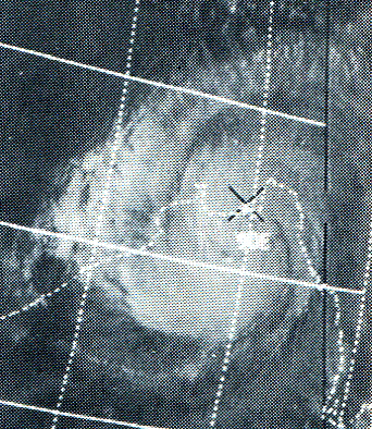 ITOS I zdjęcie satelitarne cyklonu Bhola u szczytu swej intensywności, (NOAA), Nov. 12, 1970