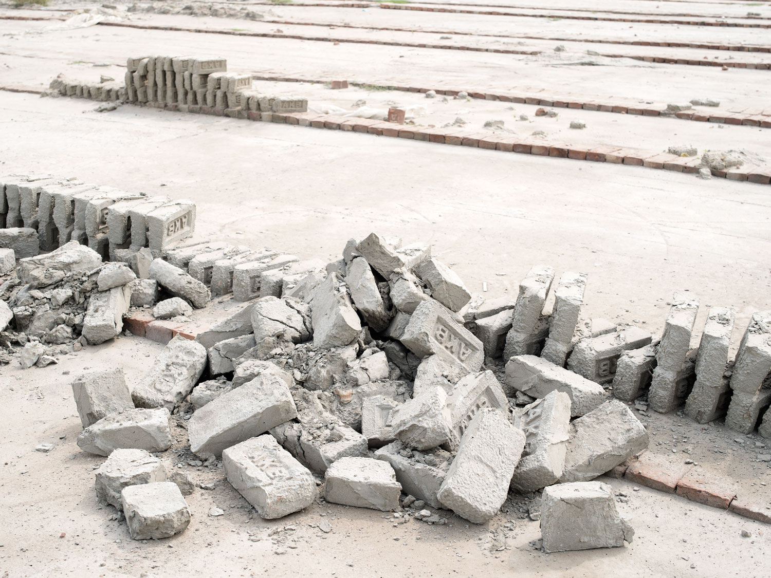 Cegły zniszczone przez powódź, Cegielnia Gabtoli, Dhaka (2017)