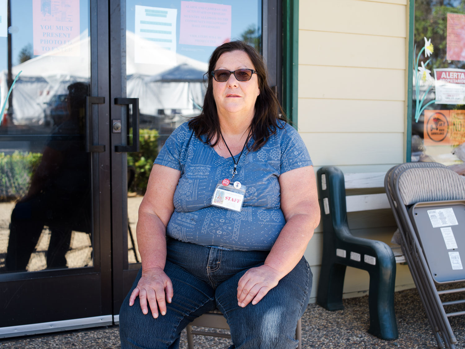 Dennis stracił swój dom w pożarze. Zgłosił się do ośrodka jako wolontariusz, w zamian za co otrzymał miejsce noclegowe. Wkrótce stał się nieocenionym członkiem zespołu organizacyjnego zajmującego się dystrybucją darowizn. Obecnie mieszkana stałe w kamperze. Na zdjęciu za nim znajduje się brązowy Winnebago, którego otrzymał dzięki pomocy centrum.
