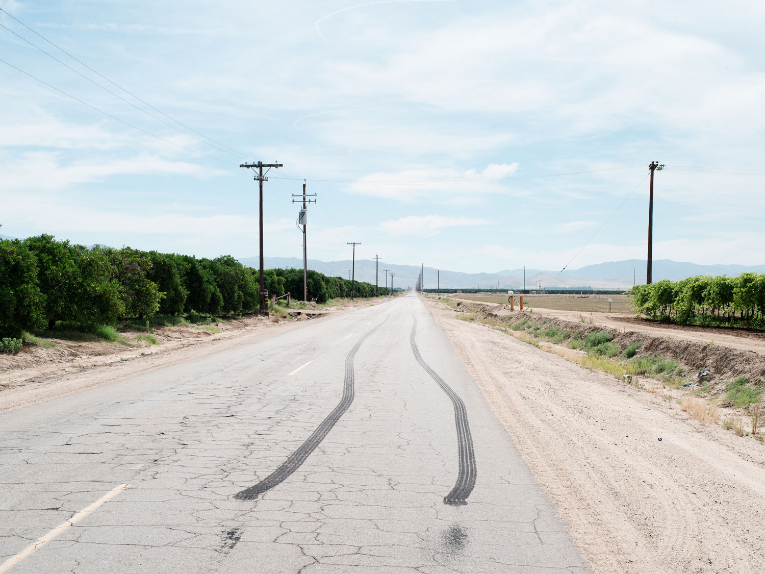 Znak po spaleniu opon, White Wolf Road, Bakersfield, (2019)