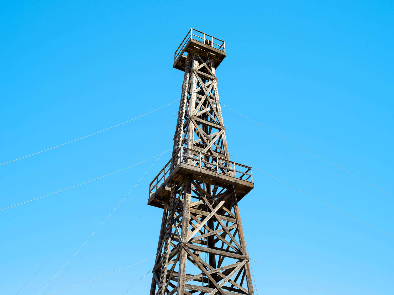 The wooden derrick of the Jameson #17 well, West Kern Oil Museum, Taft, Kern County, California, USA, (2019)