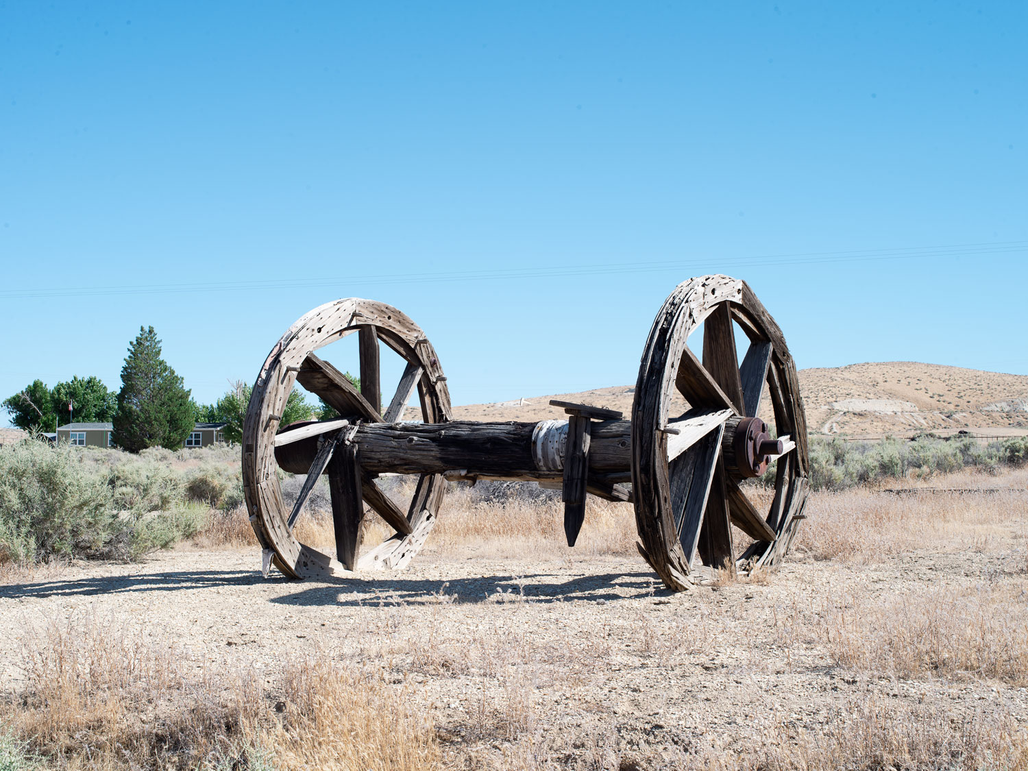 Bull Wheels from a wooden Derrick, Blue Star Memorial Highway, McKitrrick, California, USA, (2019)