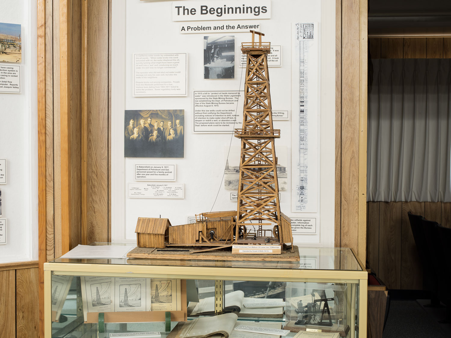 Model wooden derrick, West Kern Oil Museum, Taft, Kern County, California, USA, (2019)