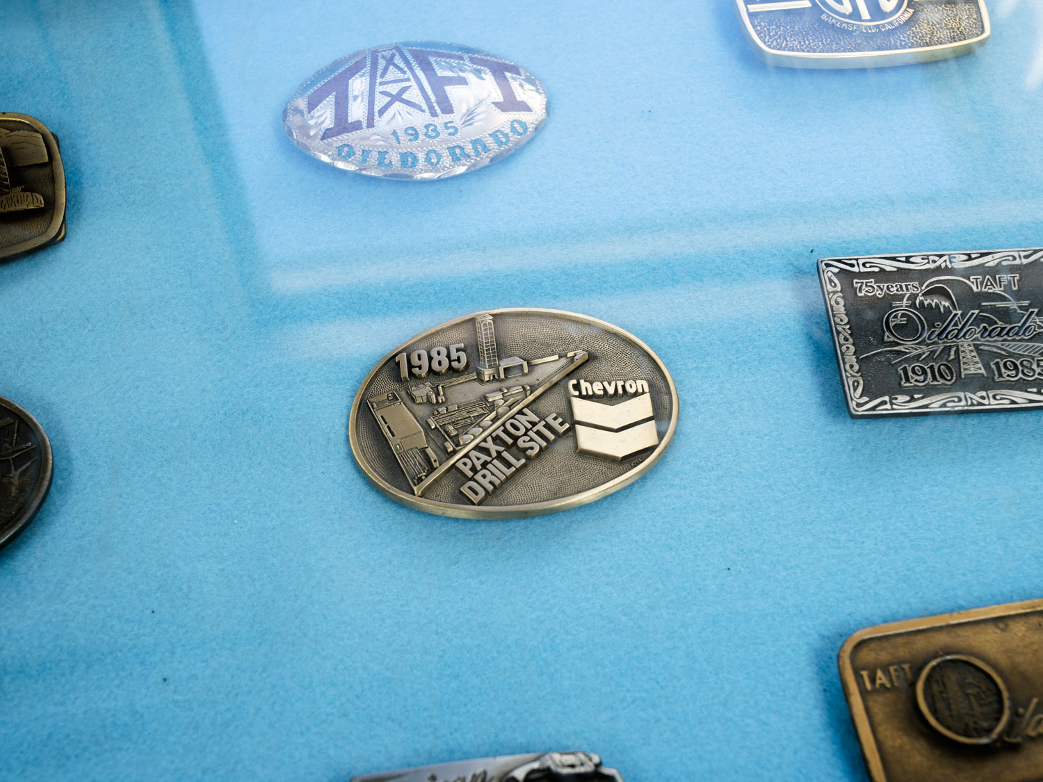 Chevron belt buckle, West Kern Oil Museum, Taft, Kern County, California, USA, (2019)