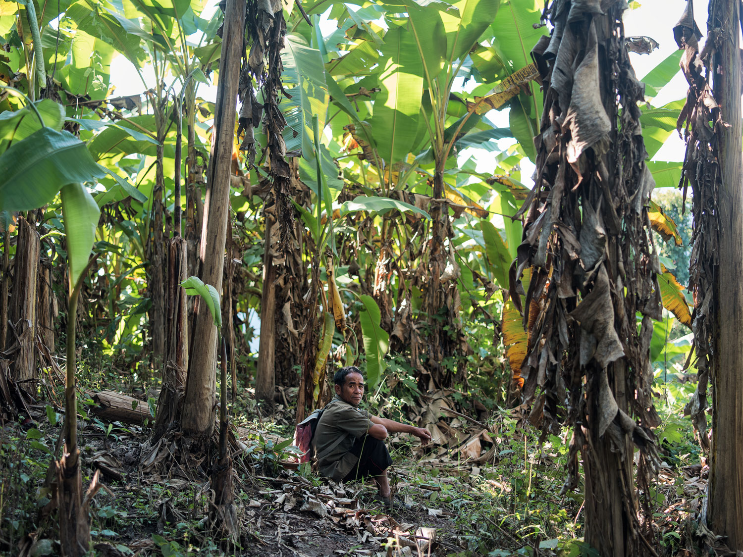 _______ a family size one PSN, working to clear his plot, Village 2, Tank 16, Omugu, Refugee Settlement, Arua District (2017)