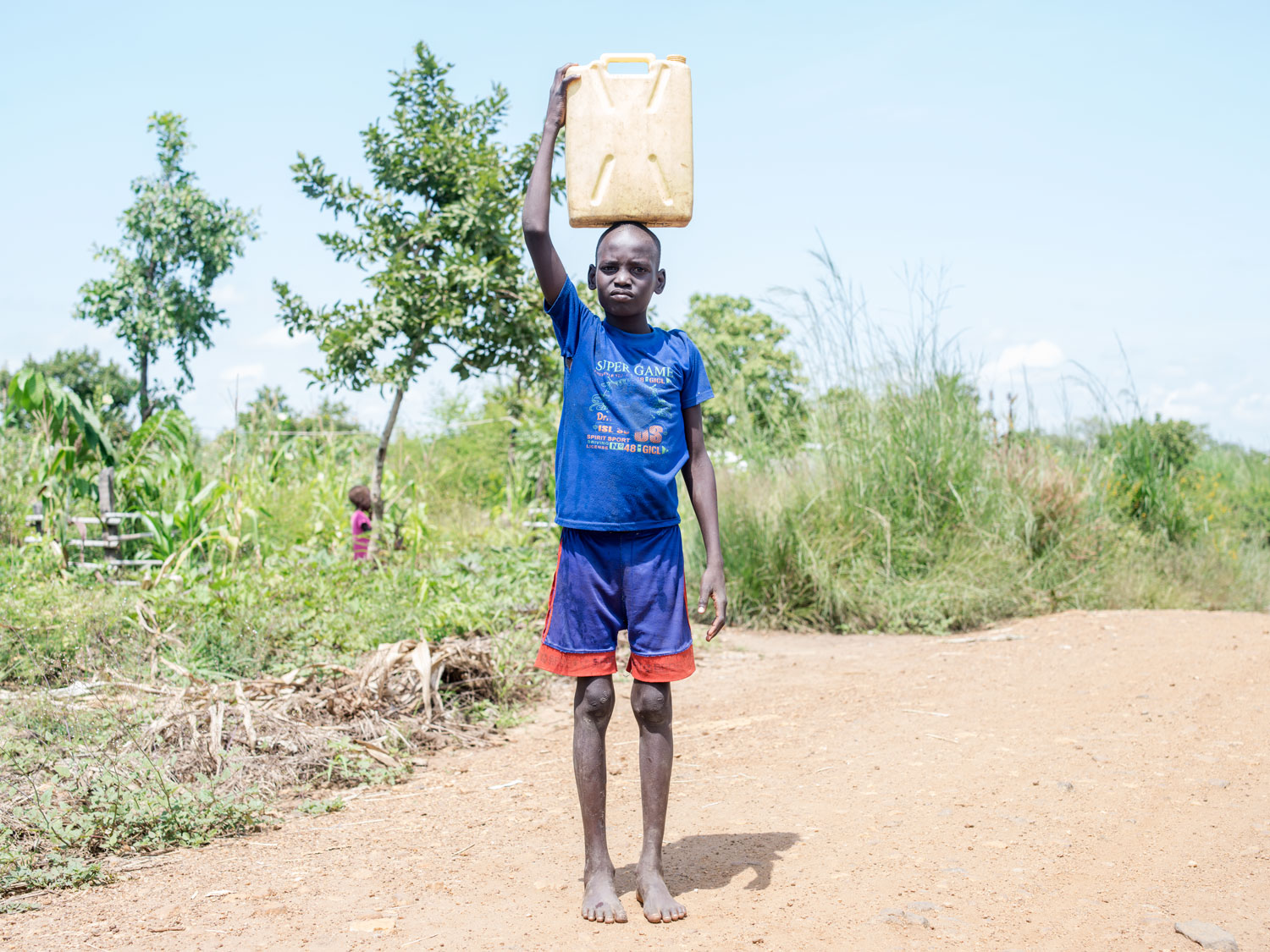 _____, retuning from a bore hole with water, Pagarinya refugee settlement, Amuru District (2017)