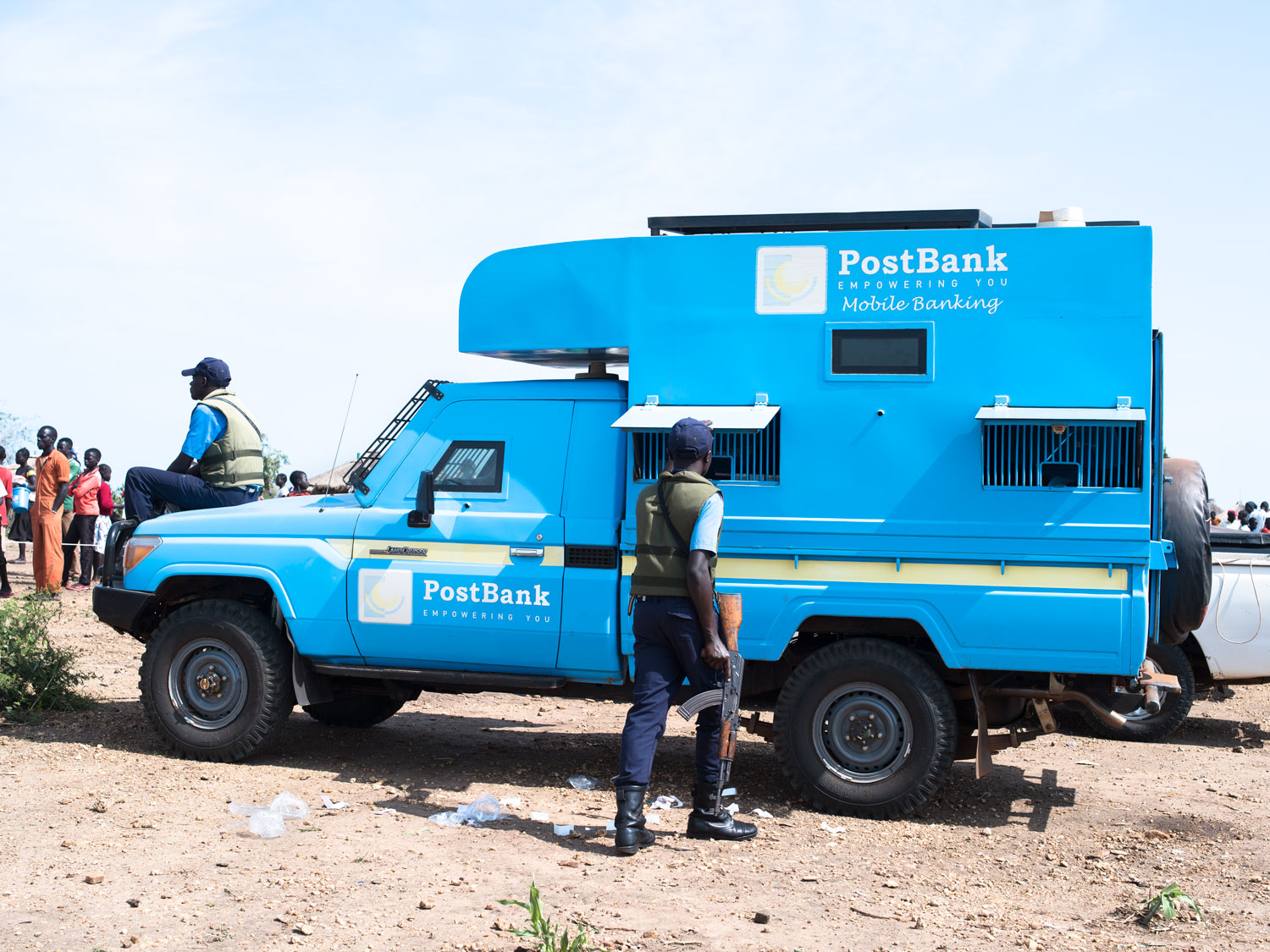PostBank kiosk and security guards, ration distribution, Zone 2, village 8, Bidi Bidi, Yumbe District (2017)