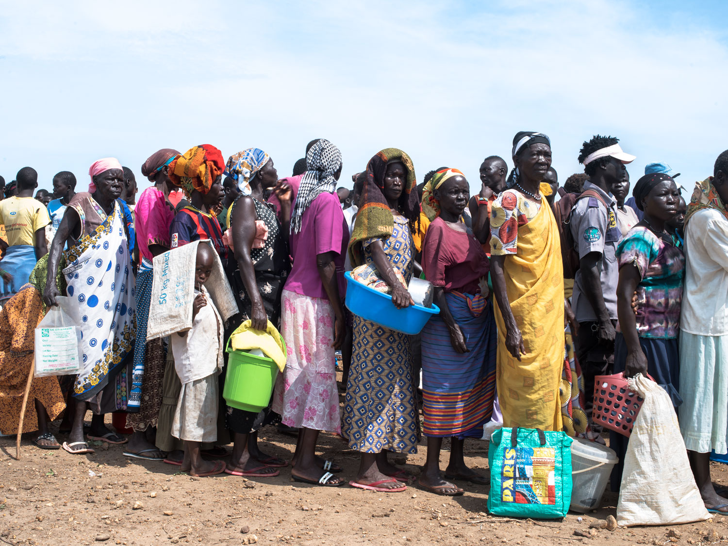 The PSN line, September’s ration distribution, Zone 2, village 8, Bidi Bidi Refugee Settlement, Yumbe District (2017)