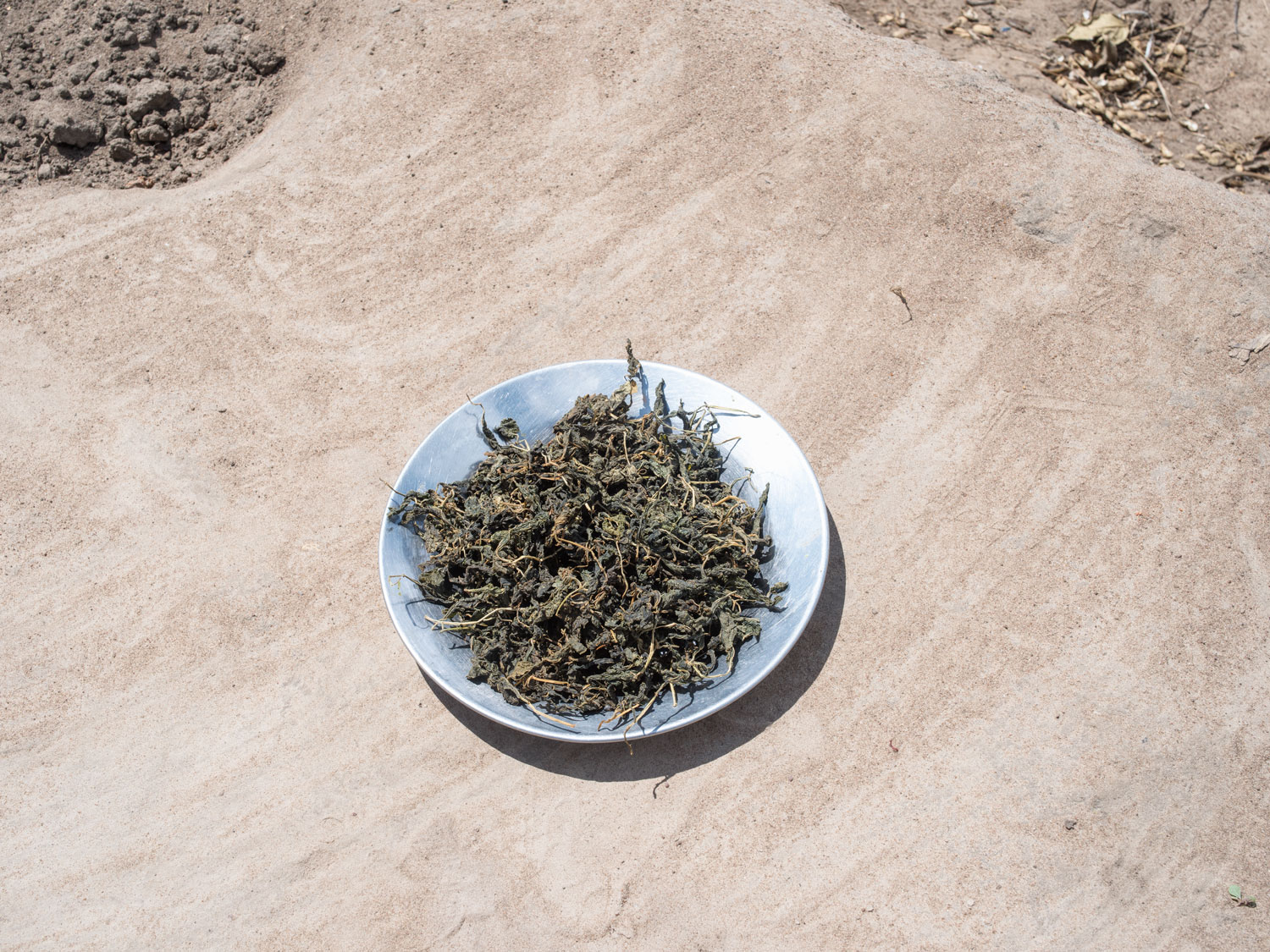 Dried bean leaves, Palorinya Refugee Settlement, Moyo District (2017)