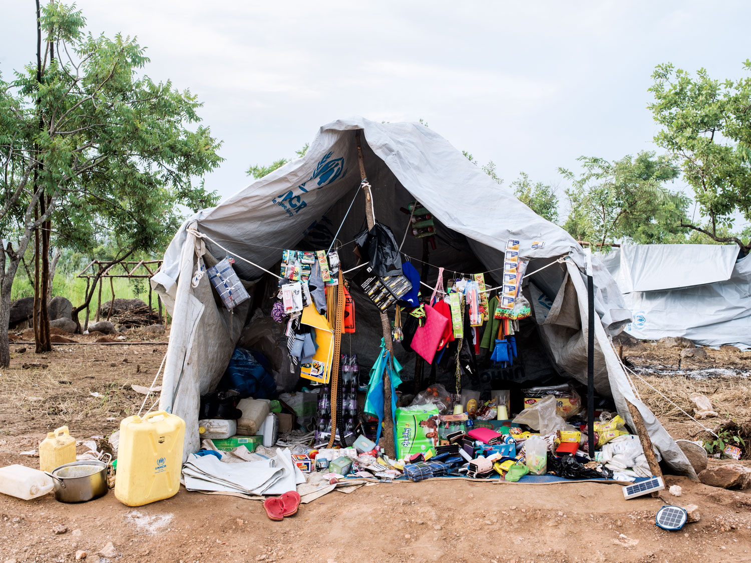 Through its Settlement Transformative Agenda, Uganda aims to enhance the development of the impoverished rural districts that host the counties refugee population. By placing refugee settlements in rural locations, Uganda intends to create economies where they had not existed before. This shop in Omugo Refugee Settlement, had been established by refugees within 3 days of their arrival, the proprietors hoping to capitalise on the lack of amenities in the newly settled area, which is far from the settlements main market.
