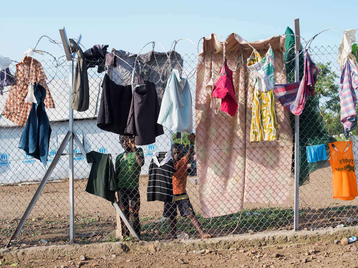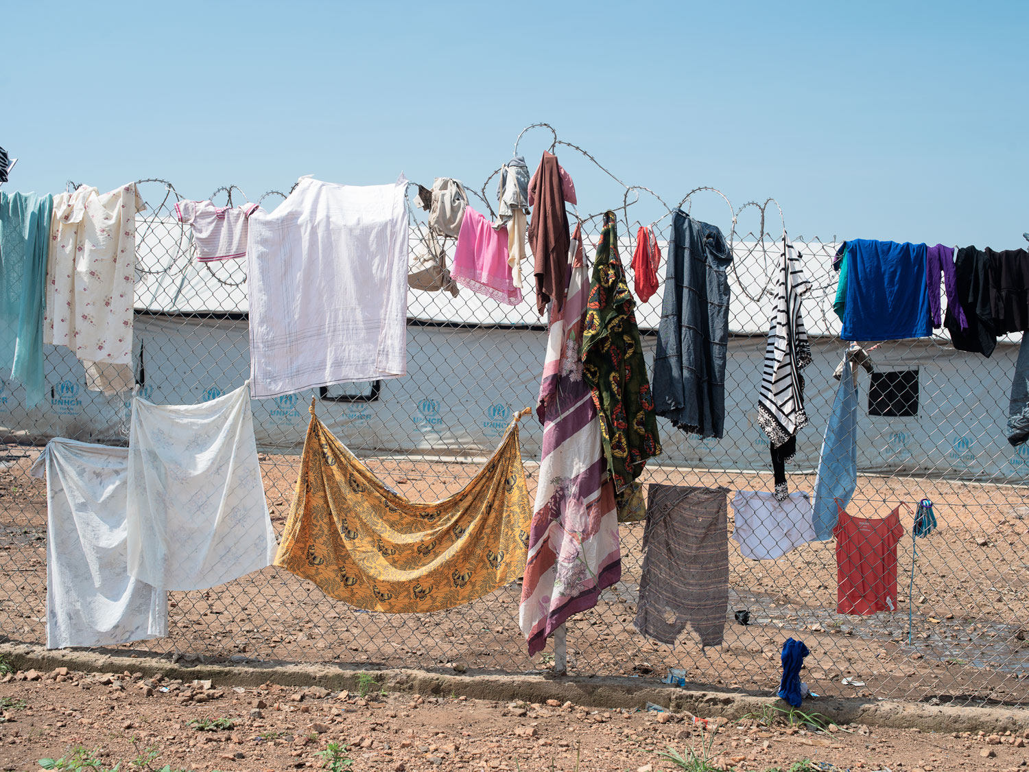 Clothes drying on a razor wire fence, UNHCR Imvepi Reception Centre, Arua District (2017)