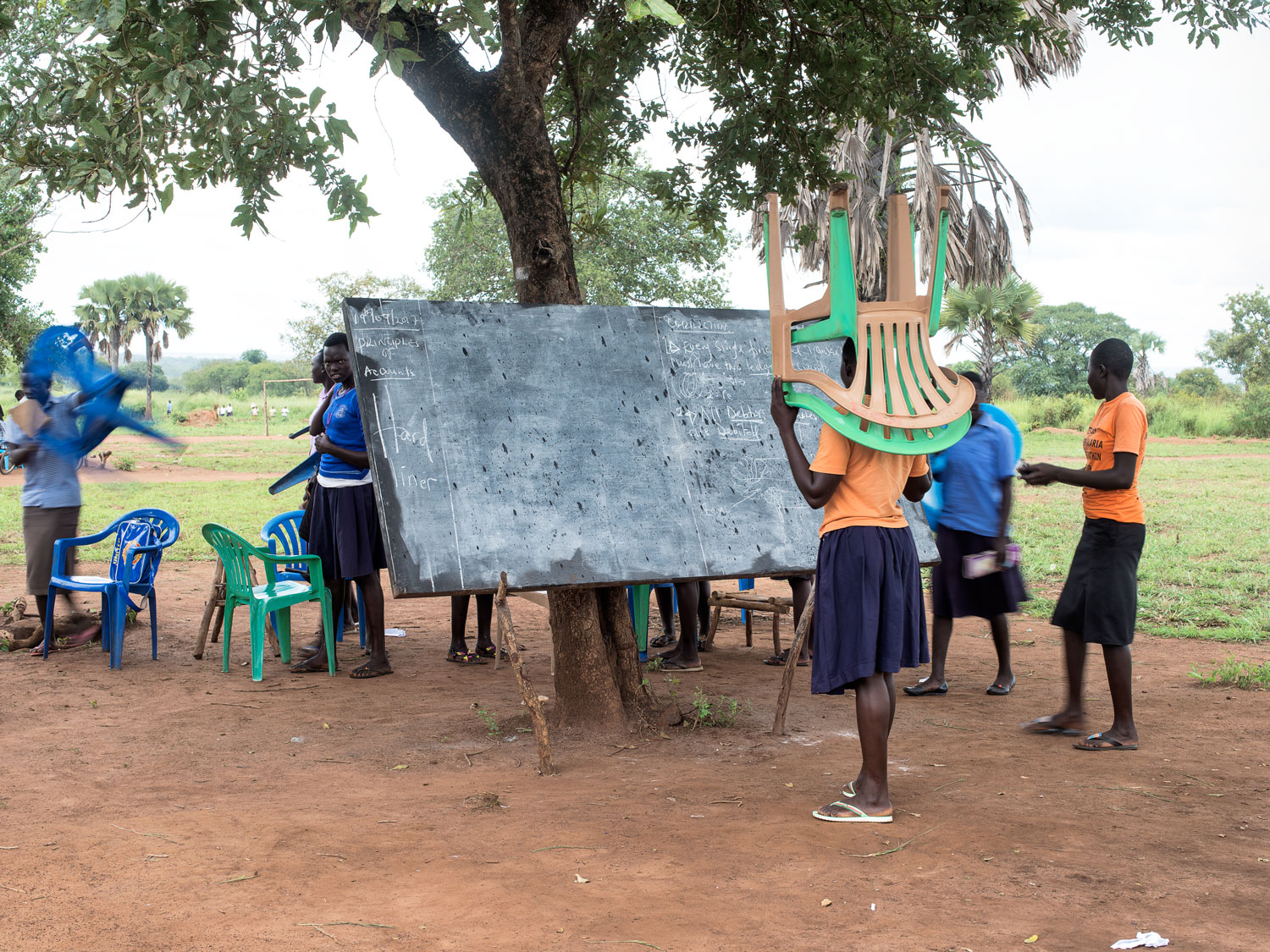 Under-tree classroom at Idiwa SS, Idiwa Parent Lead Secondary School, Palorinya Refugee Settlement, Moyo (2017)