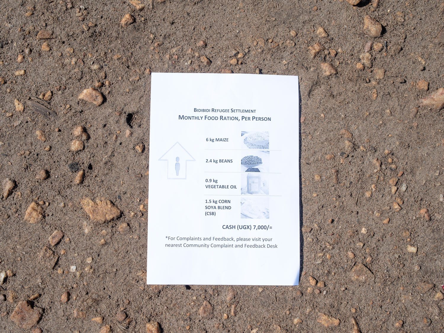 Monthly ration, per person, ration distribution, Zone 2, village 8, Bidi Bidi, Yumbe District (2017)